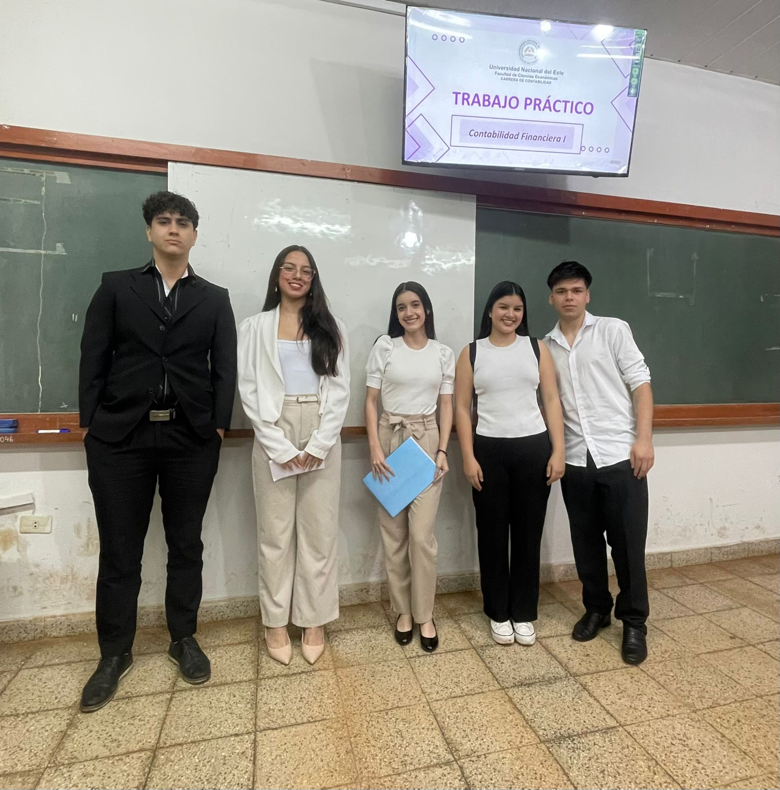 Los estudiantes del primer curso, sección “D”, de la carrera de Contabilidad de la Facultad de Ciencias Económicas de la UNE, realizaron este martes 29 de octubre/2024, la defensa de trabajos prácticos en la asignatura Contabilidad Financiera I.