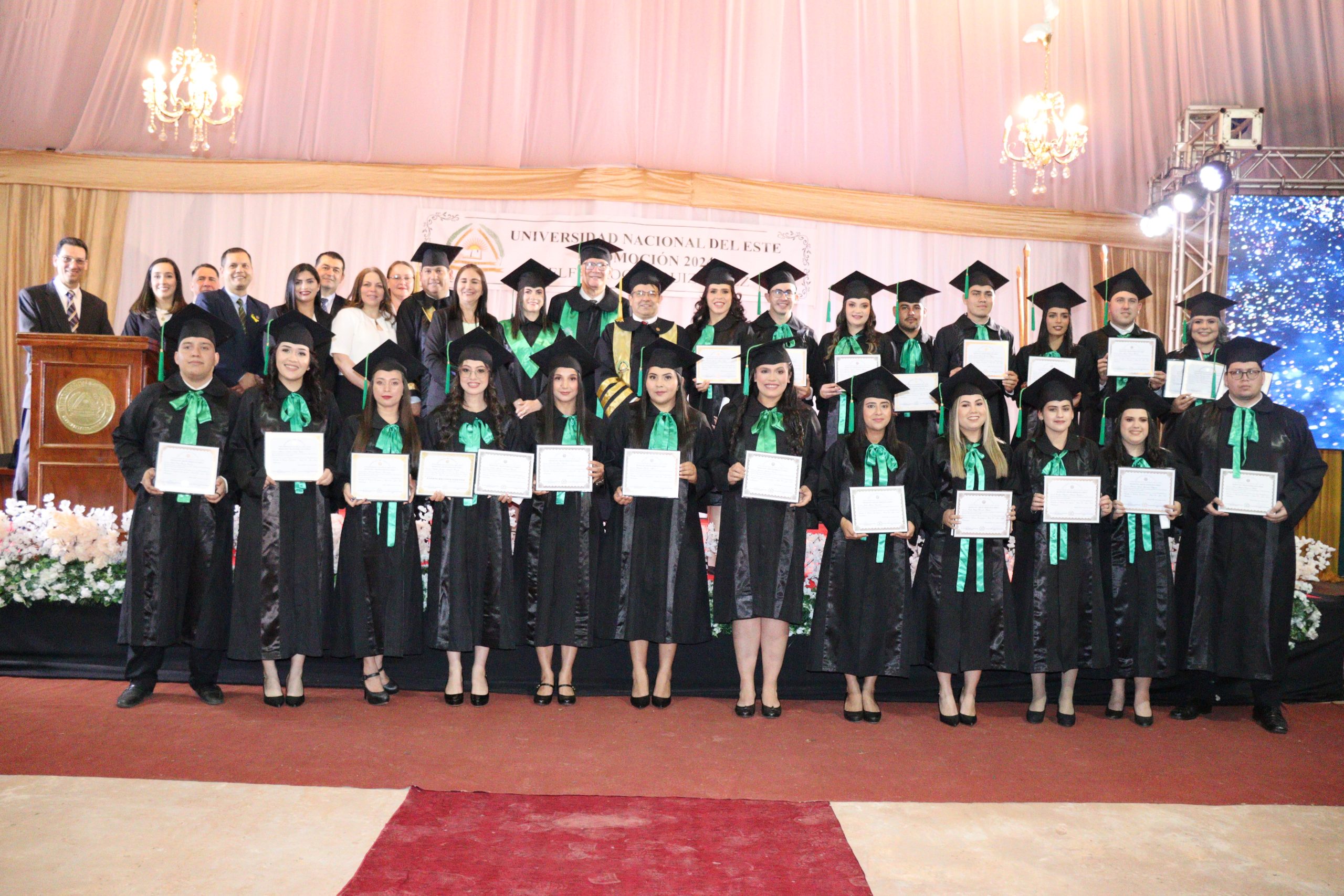 La ceremonia de graduación estuvo presidida por el rector de la UNE, Prof. Ing. Agr. José de los Santos Sánchez Martínez; el decano de la FCE, Prof. Dr. Néstor Darío Almada Aguiar; la decana de la FAFI, Dra. Paola Sánchez de Vergara; además de docentes, invitados especiales, familiares y amigos de los flamantes graduados. Así también, participaron coordinadores, directores de carreras y servidores públicos de las facultades de Economía y Filosofía.
