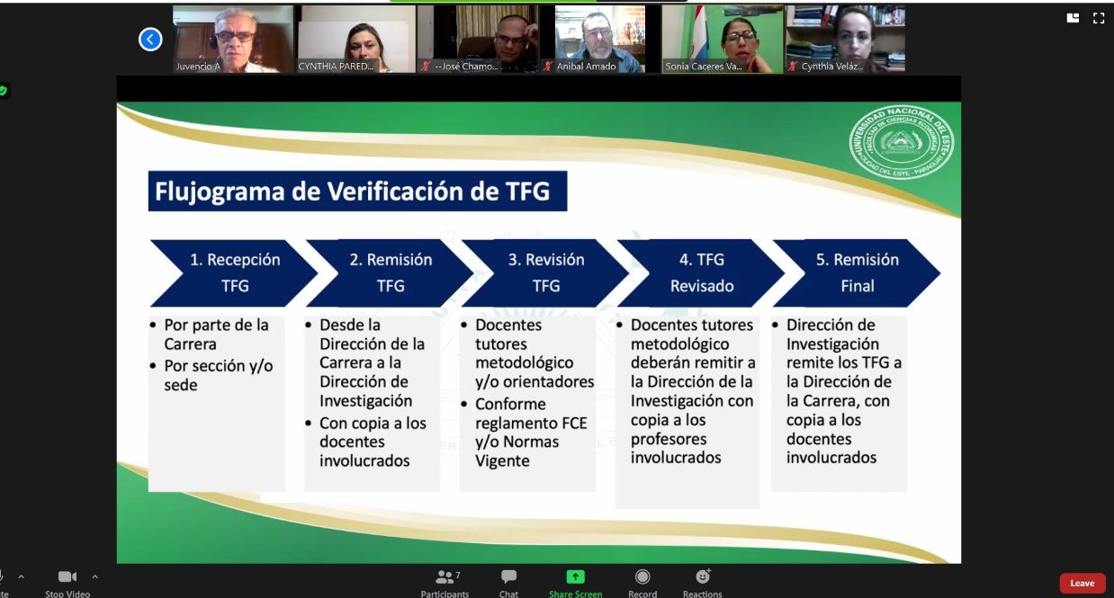 La Dirección de Investigación mantuvo una reunión telemática este lunes 9 de mayo de 2022, con los profesores de los 5° y 6° cursos de la carrera de Economía de la Facultad de Ciencias Económicas, sede central y filial Santa Rita.