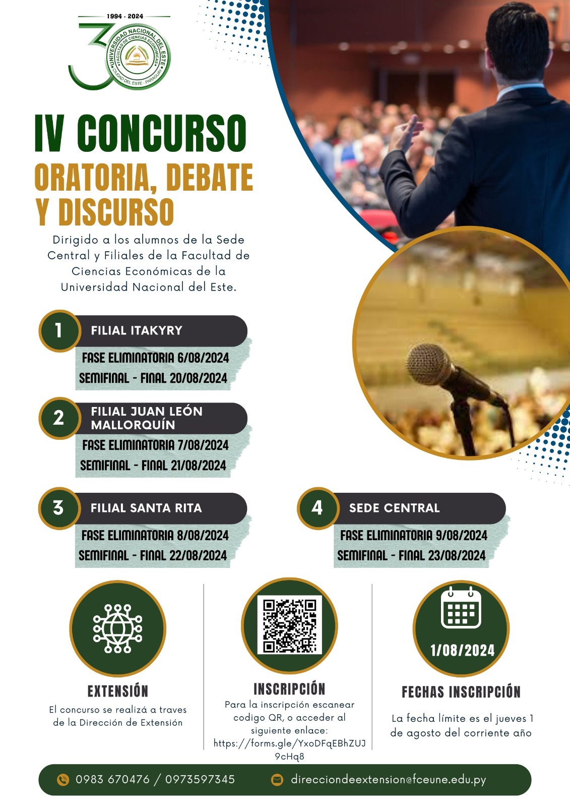 El IV Concurso de Oratoria, Debate y Discurso está dirigido a los alumnos de la sede y filiales de la Facultad de Ciencias Económicas de la Universidad Nacional del Este (FCE.UNE).